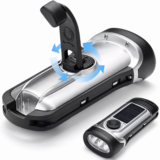 Opwindbare & Zonne-Energie Zaklamp – Noodzaklamp Zonder Batterijen voor Kamperen & Outdoor