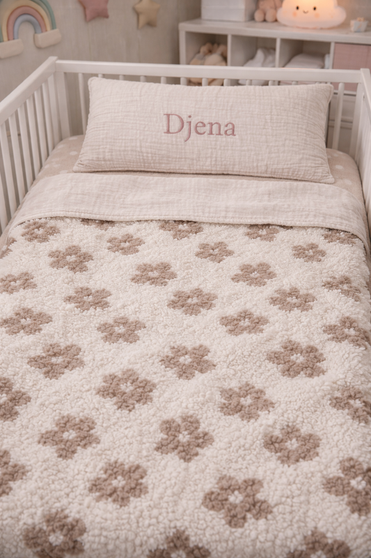 Teddy Daisy Hydrofiel Babydeken – Gepersonaliseerd met Naam – Zacht & Comfortabel